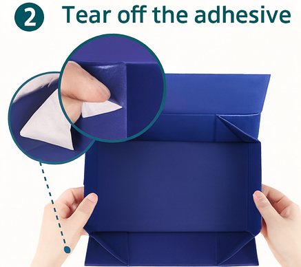 Our boxes feature pre-applied adhesive strips made from high-quality, industrial-grade glue. This ensures strong bonding while eliminating the need for additional tools or manual gluing, a detail that reflects our advanced production methods.